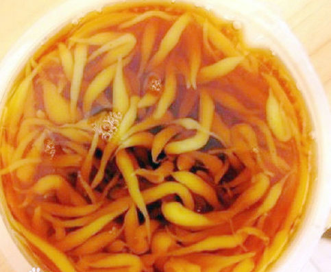 漏魚,夏季應(yīng)時開胃特色小吃,是用各類淀粉、蕎面、玉米面漿、米漿等小雜糧做的風(fēng)味小吃,也可以做漿水面條,用漿水調(diào)味食用,口感滑、軟,進口待咬時卻順喉而下,漿水那微微發(fā)酸的味道、發(fā)酵的清香,魚魚滑溜溜入口即化的美妙感覺,讓食者欲罷不能,深受廣大食客喜愛。